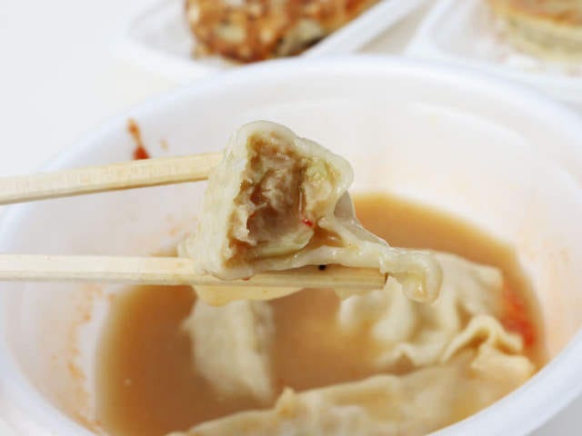 一般的な水餃子と違い、味噌のおいしさが存分に発揮された赤味噌ベースのスープがポイントだ。ゆず酢のほどよい酸味がアクセントになっている。