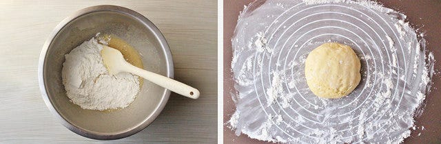 ⑤ (4)を厚さ1センチほどに伸ばし、ラップでくるんで冷凍庫で30分寝かせる。