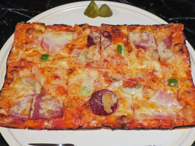 この四角くて薄くてパリッとして、暫くするとふにゃっとするのが私のピザ。