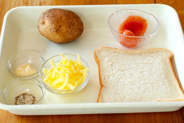 忙しい方は、市販のポテサラを使ってもOK!バタバタの朝でもしっかり満足感が得られるので、男性にもうれしいレシピだ。