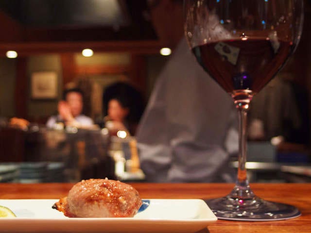 特に合わせるお酒については、ビール、チューハイ、日本酒ではなくワインを提案。「焼鳥や焼肉の場合、酒との相性は味つけではなく、肉自体の脂の強さと焼き目の強さで選んだほうがいい」と店主はいい、店主自ら探し求めた70種のワインとのマリアージュを楽しむことができる。