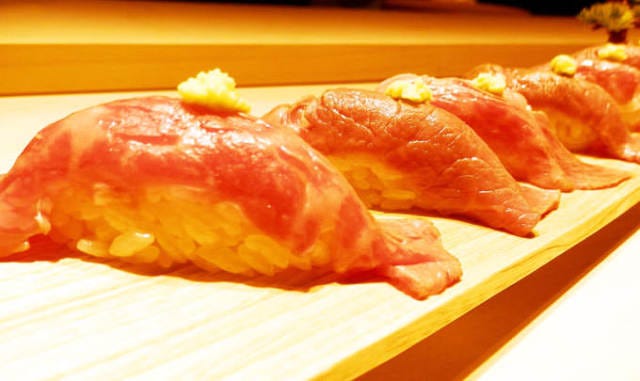 中目黒や恵比寿店のコースで出しているものをアラカルトで出し、「肉鮨」や「旨キムチ オモニ手造り」など、ここでしかないメニューも豊富に揃えている。