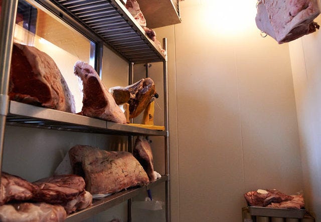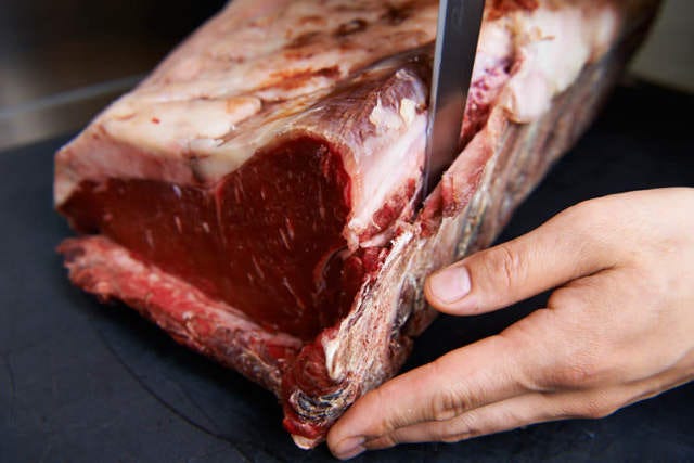 この日の肉は、これまで日本ではなかなか口にする機会の少なかった日本の経産牛。この日は月齢140カ月(約12歳)北海道産黒毛の交雑種で5週間熟成。
