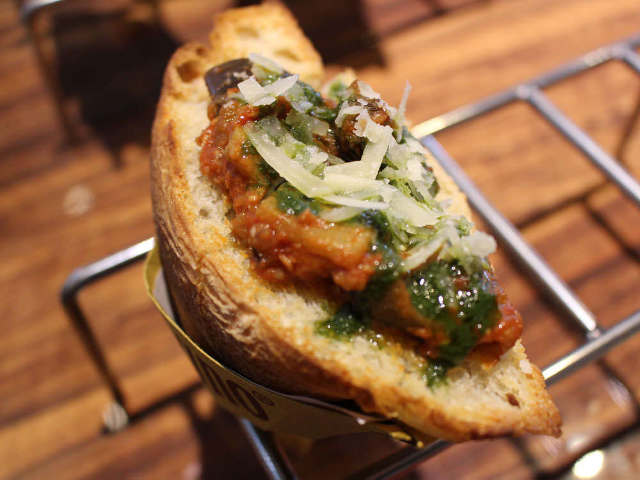 2番目に人気なのは「ナスのパルミジャーナ」。オーブンで焼いたナスをトマトソースで煮込んだローマの家庭料理で、バジルソースとチーズがトッピングされてある。ナスの自然な甘みが生きた、やさしい味わいだ。