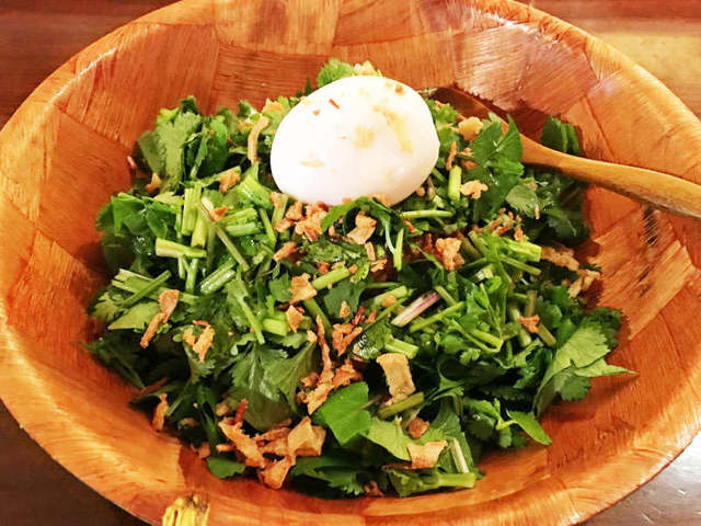 特に千葉から取り寄せた有機無農薬パクチーがメガ盛りになり、炙りチーズと半熟卵まで付く「ケニックパクチーズスペシャル」は一番人気。カリカリしたトッピングやスパイスと一体になったカレーに、モデルや女優、デザイナーたちも虜になっている。
