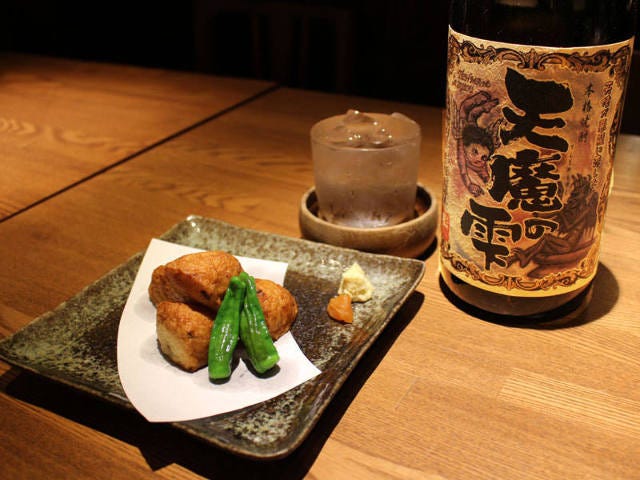 こちらの料理には、「天魔の雫」が合う。酒蔵の3つの原酒をブレンドさせたという“禁断の一手”を施した。天使と悪魔が混ざり合うような禁断の出会いで生まれた焼酎は、淡麗辛口。さつま揚げの甘みをきゅっと引きしめてくれる。