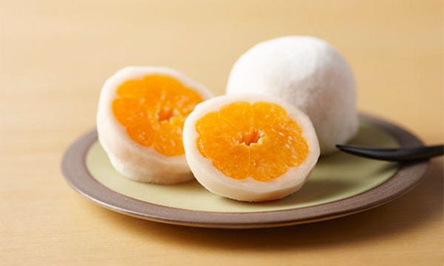「いちご大福」をヒントに、いちごの代わりにみかんを入れたユニークな大福。