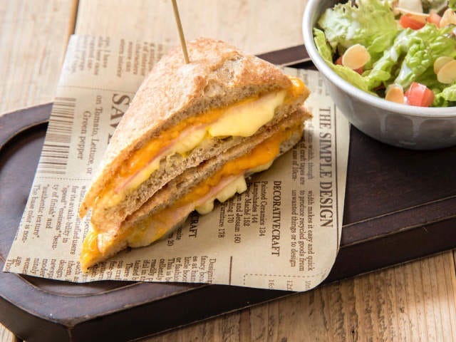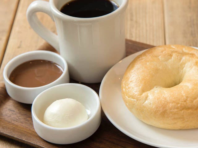 シンプルな組み合わせの「ベーグルチョコレートディップ」は、チョコレートフォンデュとクリームチーズに、もちっとやわらかいプレーンベーグルをディップして食べる。その他、全粒粉のパンを使用した、トマト、モッツァレラ、バジルソースが爽やかな「マルゲリータパニーニ」や、香ばしいベーコンと、とろけるシュレッドチーズをたっぷり挟んで焼き上げた「グリルドチーズパニーニ」の2種も登場する。
