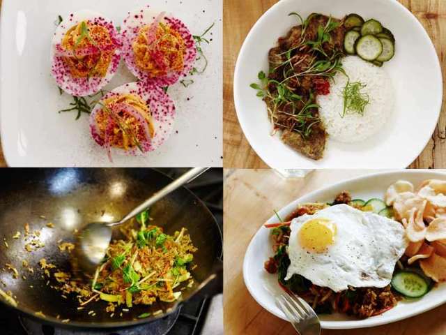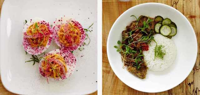▲(左)サンバル・デヴィルドエッグ、(右)ビーフレンダン
