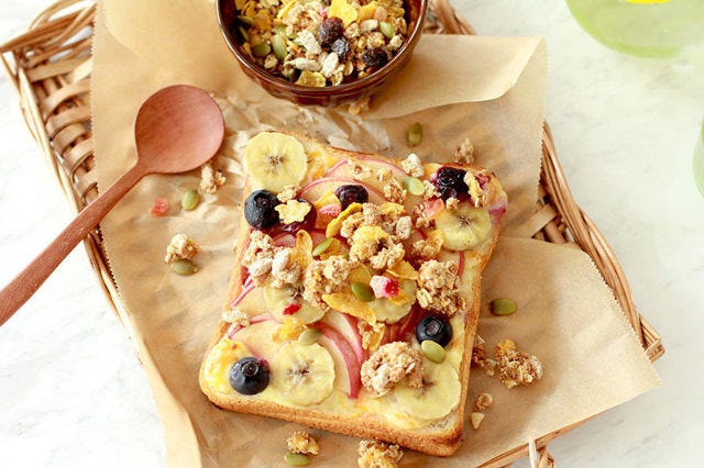ザクザクしたグラノーラとサックリ&モッチリした食パンの食感が楽しい一品。