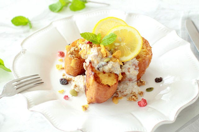 2.味の変化を楽しんで!「フレンチトーストのグラノーラヨーグルトソースがけ」