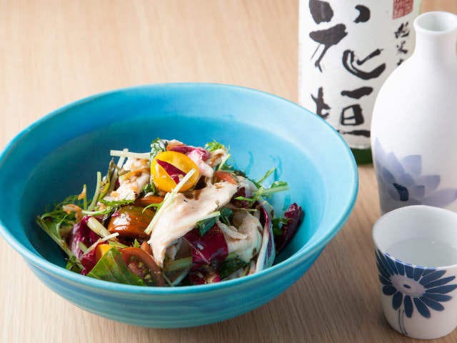 徳島産 地鶏ササミと焼き九条ネギのサラダ/1,200円