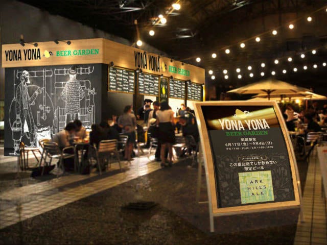 六本木『アークヒルズ』アーク・カラヤン広場では、6月17日(金)~9月4日(日)まで、「YONA YONA BEER GARDEN in ARK Hills(ヨナヨナビアガーデン イン アークヒルズ)」が限定オープン。こちらでも同様に、ヤッホーブルーイングの人気ビールが生で楽しめるほか、ビアガーデンのために特別に醸造した「ARK Hills Ale(アークヒルズエール)」が会場限定で味わえる。シトラスを中心とした華やかでフルーティなホップアロマが特徴で、ライトなボディとクリーンな苦味が印象的な暑い夏に何杯でも飲めてしまう爽やかなビールに仕上がっている。