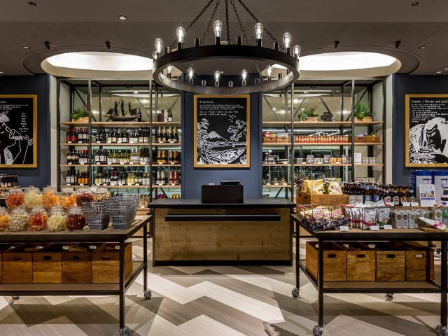 NYでは、新たな食のトレンドを生み出す場所として、フードホールが大注目されている。日本の複合施設にありがちなチェーン店が集合するフードコートのようなものではなく、素材とおいしさはレストラン並みのクオリティだが、オープンな空間にすることでカジュアルに楽しむことができるのが人気の理由。テイクアウトもできるので、さまざまな人が気軽に出入りでき、1日中マーケットさながらの活気にあふれている。こちらのフードホールもそんなNYのトレンドの流れを受け、4つの異なる店舗が1フロアに集い、フード、デリ、カフェ、ベーカリー、ショップが融合している。
