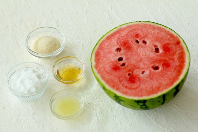 スイカの甘みにレモン汁の酸味が加わり、清涼感のある味わい。甘みづけは砂糖とハチミツを入れることでスイカの果糖と組み合わさって風味豊かな甘さを楽しめる。女子会のデザートに出したら盛り上がること間違いなしの一品。