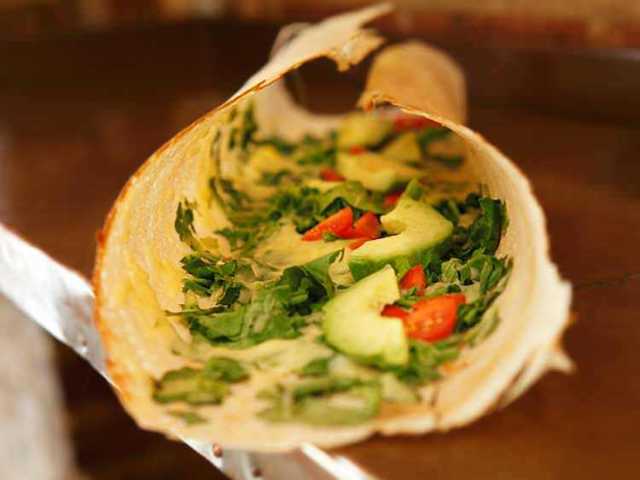 具のバリエーションは豊富で、迷ってしまうほど。チキン、アボカド、アルグラ、トマト、ジャックチーズ入りのドサも人気がある。