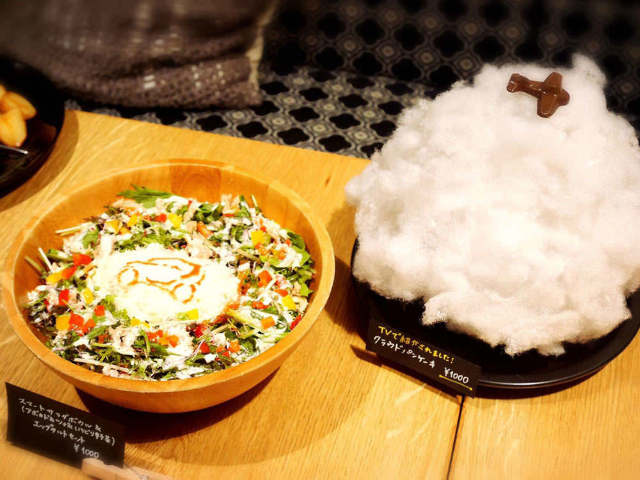 昼過ぎに完売してしまうこともあるほど人気の高い「クラウドパンケーキ」もオススメ。わたがしの上に飛行機型のチョコレートがあり、あたたかいソースをかけてわたあめの部分を溶かすと、モクモクした雲の下からパンケーキが現れるというユニークな逸品だ。