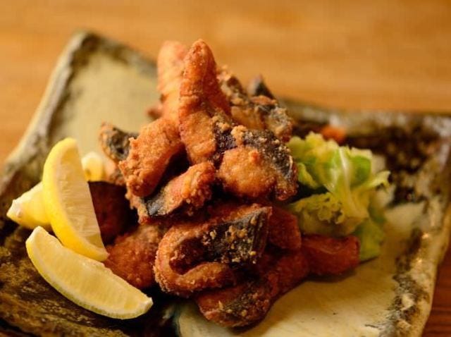 サバの下味は醤油で洗うようにしながら短時間でなじませるのがポイント。さらに二度揚げすることでカラリと揚がり、サクッとした歯ごたえに。青魚にはやっぱり日本酒や焼酎がベストマッチ!