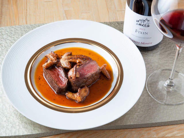 素直に肉のおいしさを引き立たせるために用意されたのは「ペロ ミノ フィサン2012年」。きれいで熟成感のあるブルゴーニュである。少し酸は利いているが力強く、肉の後にのどを潤せば明らかに肉の味が変わるのがわかる。あくまでも料理が主役という新澤氏。ふたりの作るマリアージュをとことん楽しんでみたいと思わせてくれる。