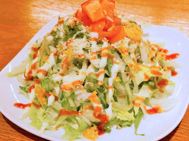 オーダーを受けてから刻むシャキシャキのレタスがどっさり覆い、タコミートではなくチリコンカンがライスの上を彩る。レタスの下に盛られたコールスローがレタスとチリコンカンとがっちり手をつなぐ一皿だ。チリのスパイシーさとコールスローの甘みが絶妙にマッチ。目と胃の両方が喜ぶタコライスは同店でしか味わえない。