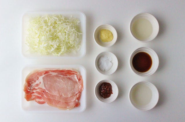③ 全体にタレが絡んだら、お皿に盛りキャベツを添える。