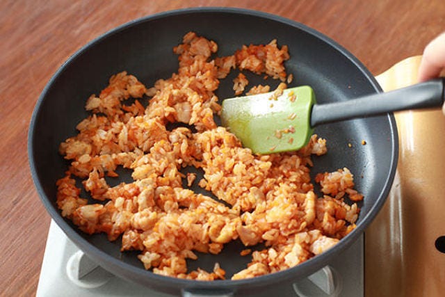 (※調味液は、ご飯を炒める前に入れて水分を飛ばすことで、ご飯がベチャつくのを防げる。)