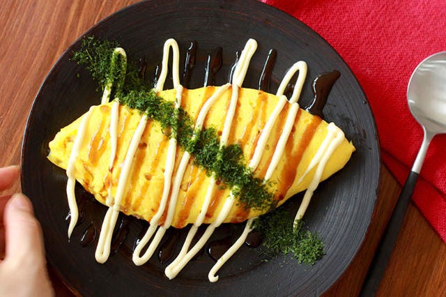 3.おいしいに決まってる! 家にいながら屋台気分を味わえる「お好み焼き風オムライス」