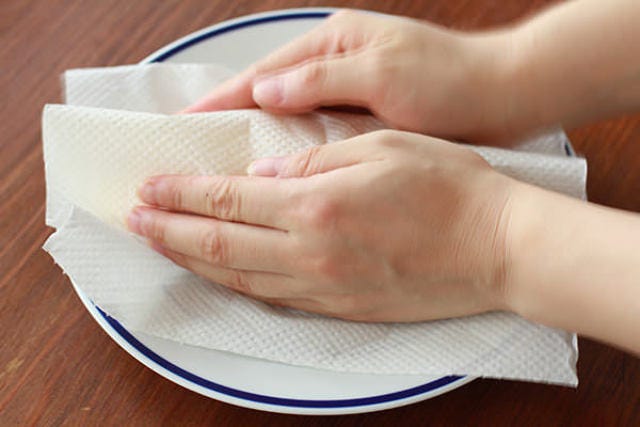 (※ここで、キッチンペーパーで形を整えると、きれいな仕上がりになる。)