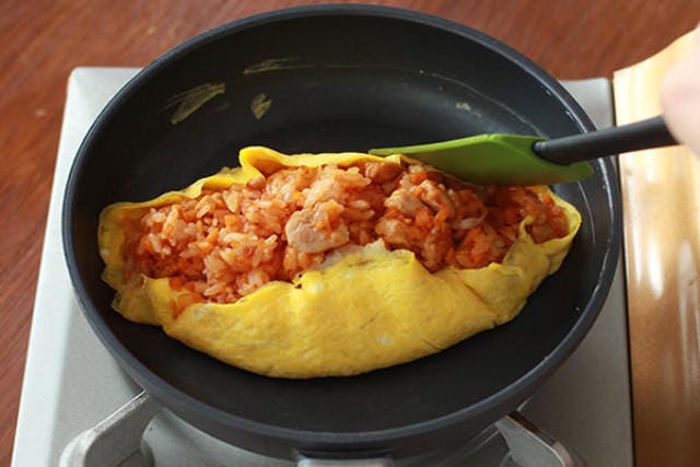 オムレツは牛乳を入れることで卵が固まりにくくなるため、トロトロな仕上がりを再現しやすい。半熟の見極めができるようになるまでは練習が必要だが、「ちょっと固まってきたかな…?」と思った時点ですぐに包む作業に入れば成功率は高い。