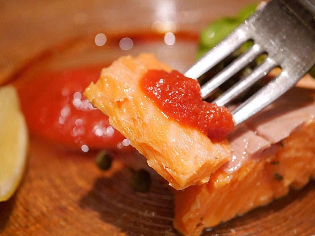 4種のソースとやわらかな食感が忘れられない「サーモンの瞬間燻製」