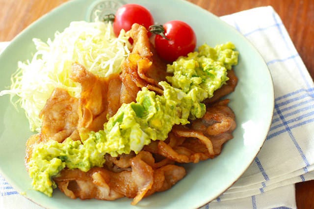 1.甘辛ダレとアボカドの濃厚タルタルでマイルドに!「アボタル生姜焼き」