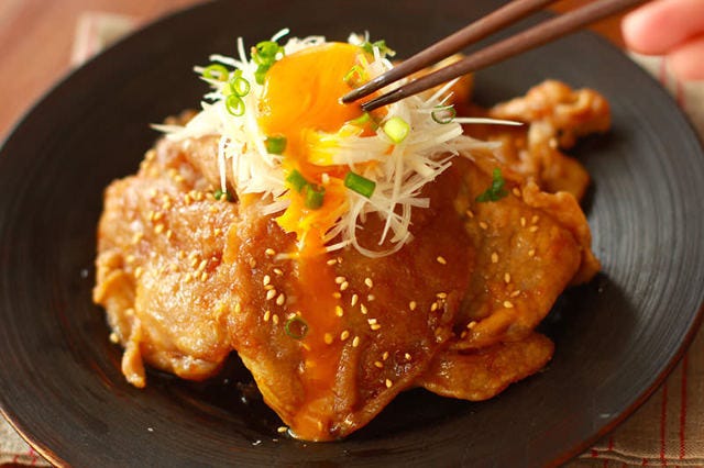 3.濃厚ダレにとろ~り卵! 丼ぶりにもおすすめな「すき焼き風生姜焼き」