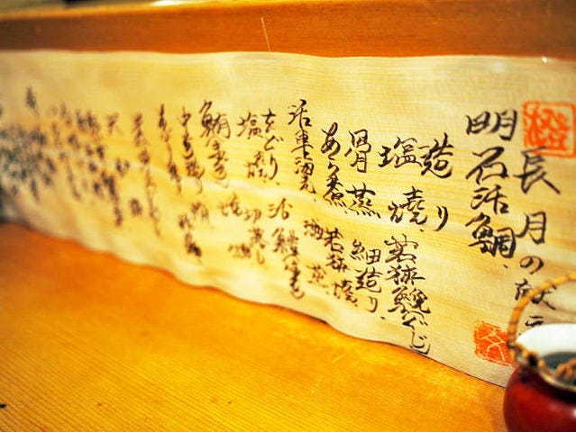オーソドックスな割烹に行くと、だいたいその日の素材が書いてあって、テキストの脚註やアンダーラインのように、刺身なのか塩焼きなのかが書かれている。