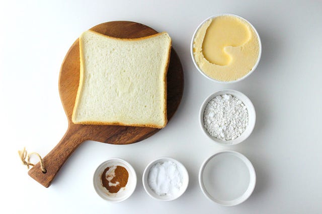 ④ 焼いた食パンに乗せて、お好みでシナモンパウダーをかけて完成。