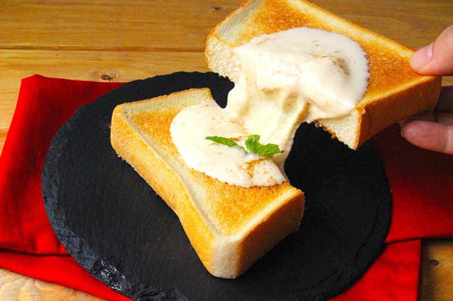 伸びるアイスとして有名な「トルコ風アイス」も、バニラアイスにひと手間加えれば簡単に再現が可能! 作るのも楽しいトルコ風アイスをこんがり食パンに乗せれば、おいしいスイーツに大変身。アイスの味を変えれば無限にアレンジを楽しめる。