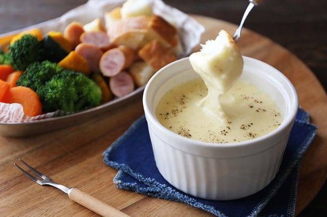 3.冷めても固くならない! 5分で作れる濃厚クリーミーな「ホワイトチーズフォンデュ」