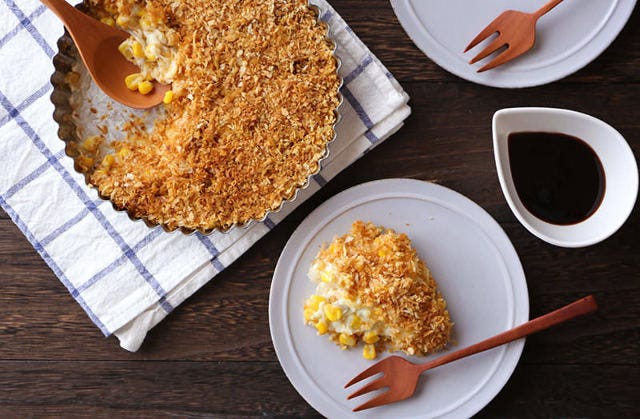 2.揚げずに作る「コーンクリームスコップコロッケ」は取り分けスタイルでおいしい&楽しい