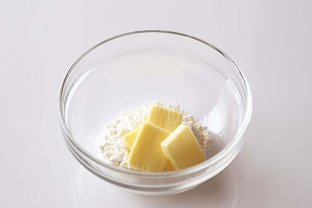 ① 耐熱ボウルに小麦粉、バターを入れ600Wで30秒加熱する。