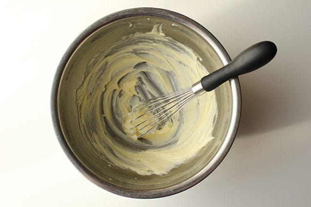 ② 別のボウルに、常温に戻したバターと粉砂糖を入れ、よく混ぜる。