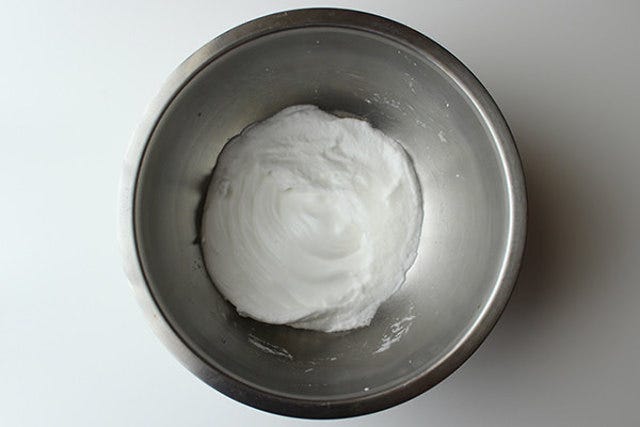 ① 卵白と砂糖大さじ1をボウルに入れ、しっかりと泡立てる。