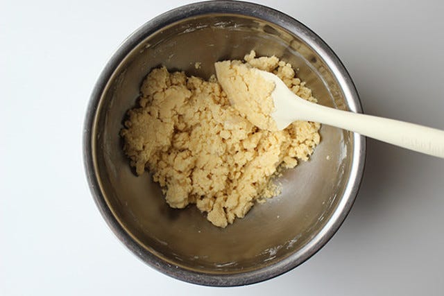 ② [B]をふるって①に加え、さっくりと混ぜる。ポロポロとしたかたまりができてきたら、ひとつにまとめる。