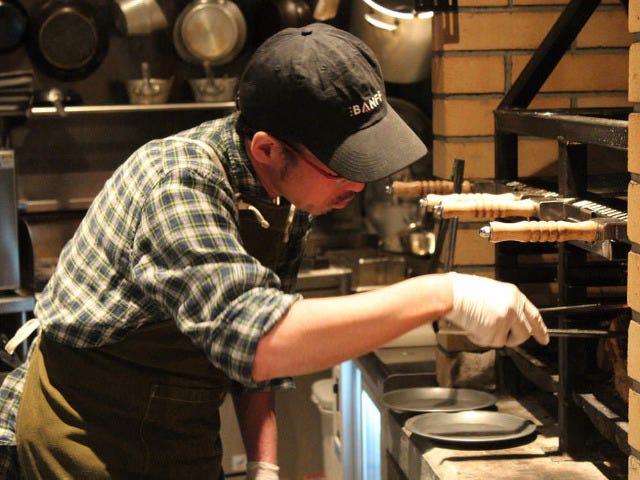 「キャンプファイヤーをコンセプトとしたダイニングは日本初だったので、機材は全て特注で作ってもらったんです」と語るのは、料理長の行方則洋(なめかたのりひろ)さん。扱い方が非常に難しいとされている薪火を扱えるひとは一握りだという。