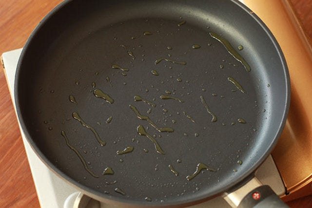 サラダ油を多めに引くと、キレイなまだら模様が作りやすくなる。