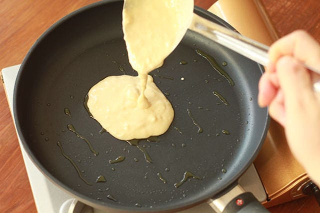 生地はフライパンの中心に流し入れること