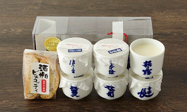 おいしい地酒をつくる酒蔵が数多くある滋賀県の中で、個性豊かな6つの酒蔵を厳選。この生チーズケーキは、酒粕を贅沢に使った大人のスイーツ。「酒粕は生き物」という蔵元の言葉通り、酒粕は日ごとに熟成を増し、その香りと味わいを変化させていくもの。健康食品である酒粕を使ったスイーツは、ヘルシー志向の方にもおすすめ。銘柄が書かれたお猪口に入っていて、手軽に滋賀の酒蔵巡りを楽しめるのも人気の秘密。