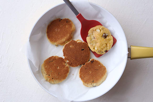 クッキー生地は大きめに伸ばすと、アメリカンで大胆な見た目になってよりフォトジェニックな印象。フライパンで焼くと多少膨らむので、生地を並べるときは空間を作っておこう。