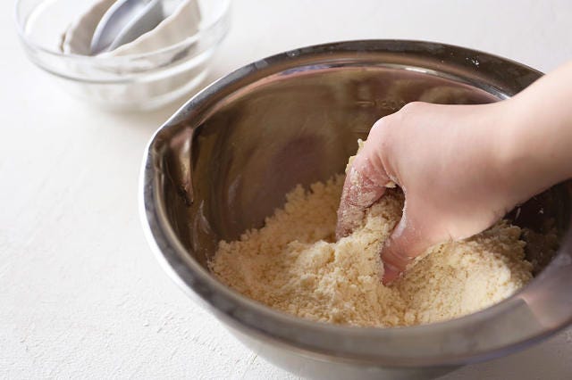 ② Aをボウルに入れ、バターを加えてすり混ぜるようにして指の腹で混ぜる。