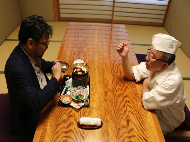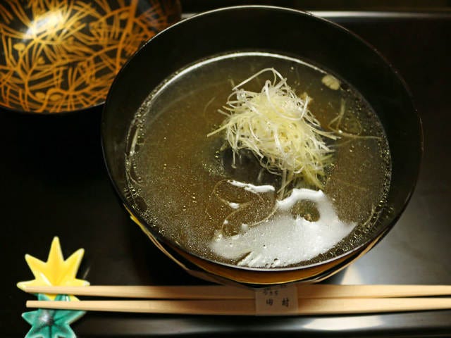 祖父、父、自分と三代にわたって伝統を守りつつ、常に改良と進化を続けていると語る田村隆さん。熱く語る三代目を前に食べるというのはかなりの緊張なのだろうが、いつも呑まないお酒が入っているので気楽に美味しくいただいた。日本料理で一番好きなのは、お椀だ。だしがしっかりきいた熱いお椀を口にすると「日本人に生まれてよかった」といつも感じる。最近はだしのない味噌汁を若いお母さんが作るので、おふくろの味がだしのない味噌汁の味になっている小学生が少なからずいるとのこと。哀しい話である。