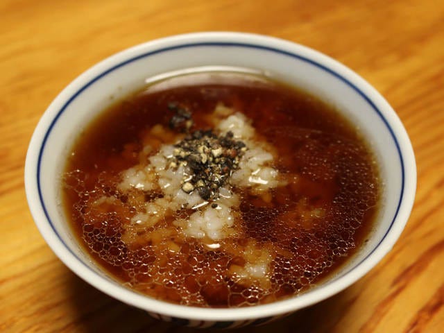 スッポンのお椀だ。自分は猫舌じゃないので熱いお椀が美味しく味わえる。だし、スッポン、ネギ、生姜……、いろんな味が次々に口の中で混じり合い、何ともいえない変化に結局「うまい」という言葉しか出ないw