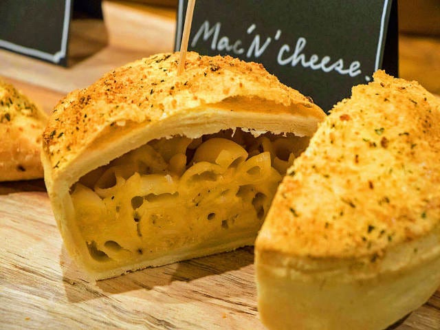 「Mac ’N’ Cheese(マック&チーズ)」(写真)は、セイボリー(おかず系)パイで一番人気のメニュー。ひと口かじると、中からたっぷりのチーズとパスタがとろけ出す。具がぎっしり詰まったグラタン風味の温かいパイは、大人も子供も喜ぶ味。食べ応え抜群の定番メニューは、朝ご飯から夜食までどんなシーンでもあったら嬉しい定番の一品だ。